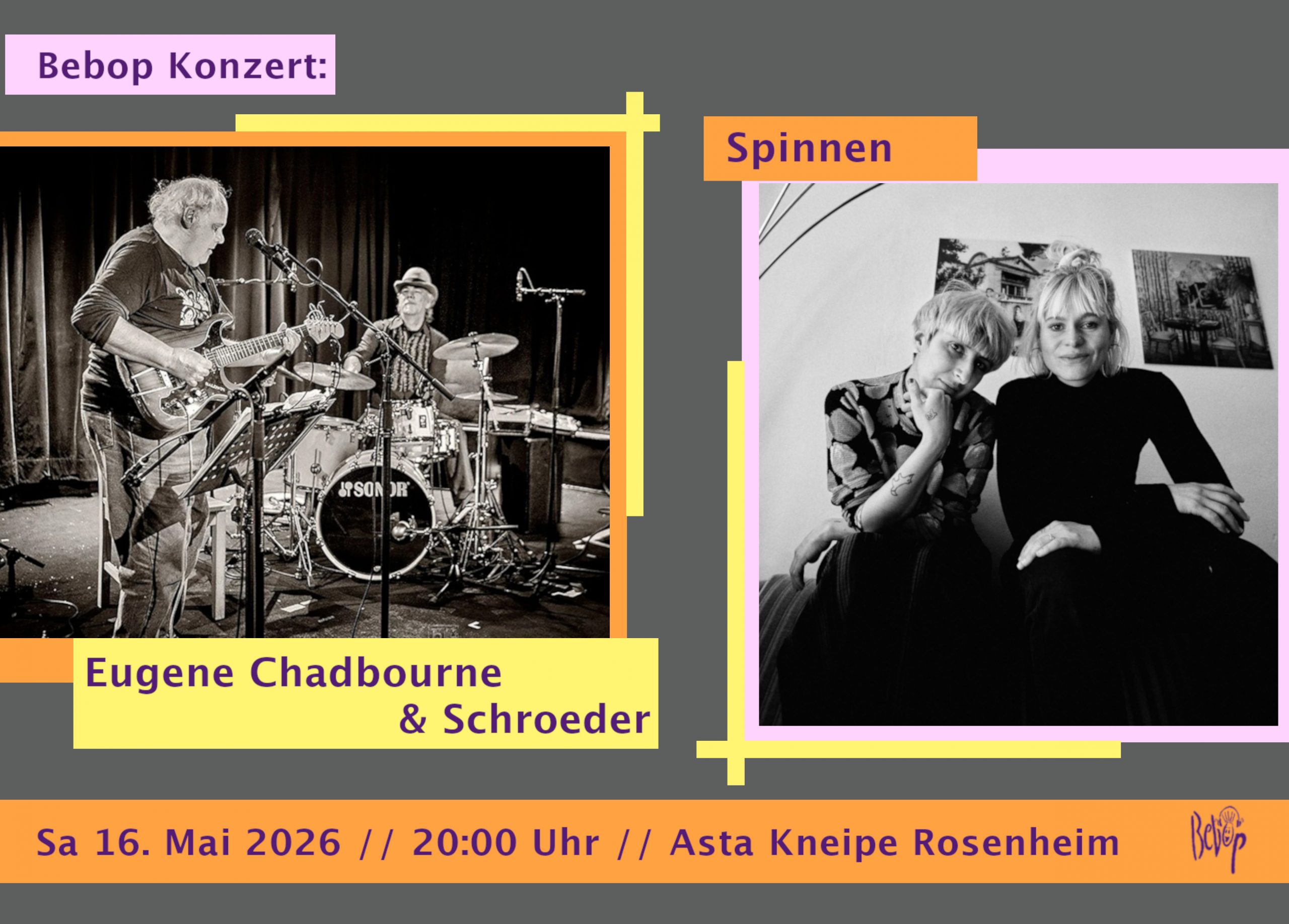 Eugene Chadbourne aus den USA und Schroeder aus Freiburg spielen seit über zehn Jahren zusammen, nachdem sie sich über die gemeinsame Liebe zu Frank Zappas Musik kennengelernt hatten. Aus der gemeinsamen Jam Session entwickelte sich eine lose Zusammenarbeit der zwei Klangforscher, die in obskuren Cover-Versionen und eigenen Stücken viele Genres kombinieren und aufeinanderprasseln lassen, Rock‘n‘Roll und Jazz, Country & Western und Folk, Improvisation.